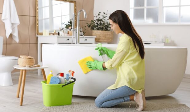 Bathrooms contain a mix of materials, ceramic, stone, metal, timber, and glass, all of which require slightly different care.